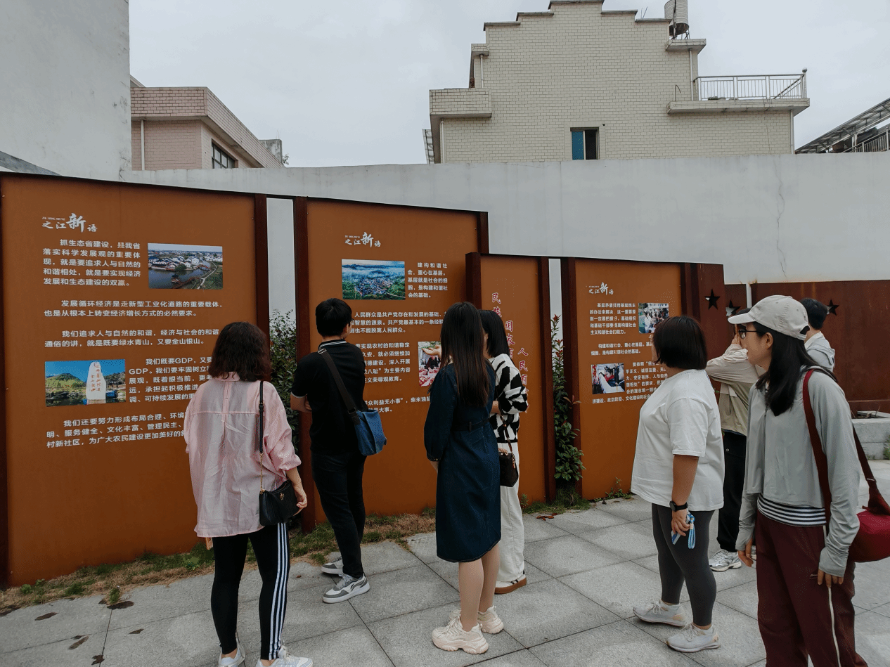 9日上午,国外马克思主义学科全体师生乘坐大巴前往埠头镇振兴村进行实地考察。振兴村是一个移民村,由原三溪村和永溪村的居民因建设仙居县下岸水库而迁移至此。移民20年来,村庄发生了翻天覆地的变化,人民生活水平显著提高。振兴村的红色记忆馆位于文化礼堂内,分为序厅、村情介绍、村庄发展史和红色展陈馆等部分,展示了振兴村的发展历程。此外,馆内还展示了村内的老物件,如旧党旗、草鞋等红军抗战时期的物品。2006年,时任浙江省委书记的习近平同志曾到该村考察调研。如今,埠头镇政府致力于将振兴村的红色展馆打造成集红色教育基地、爱国主义教育基地和党建示范点于一体的综合体。展馆内设有可同时容纳100人的学习讲堂,播放党史学习影片,并邀请老党员讲授党课。通过这种形式,让干部群众有学习场所、有学习内容、有学习乐趣,实现寓教于乐的目标。
