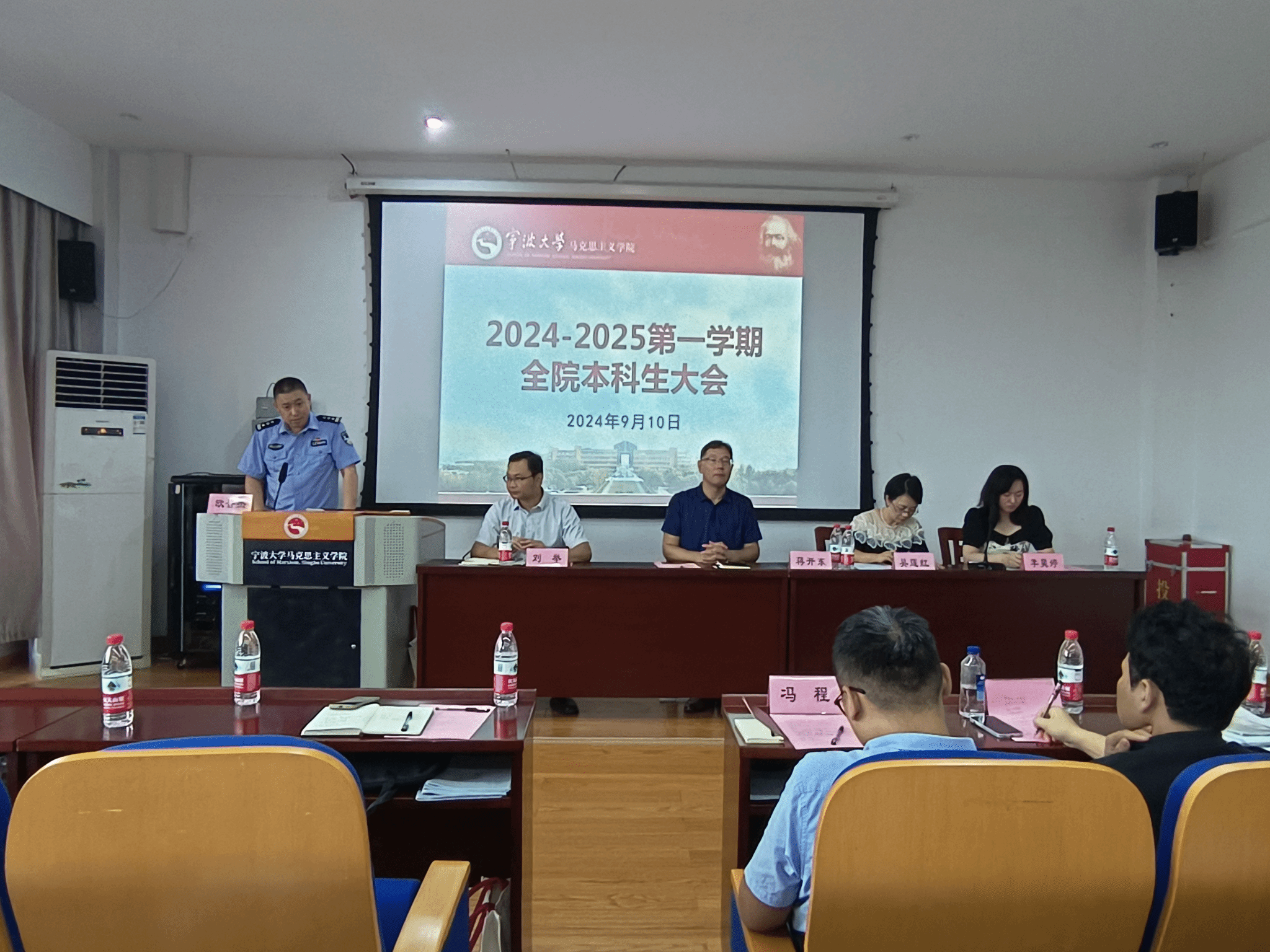 2024年9月10日上午,学院召开秋季开学本科生大会,学院党委书记蒋开东、副院长刘举、党委副书记吴莲红、思政中心副主任李昊婷、本科生班主任冯程、陈兴亮、教务秘书刘成稳、学工办杨曼、任彬和全体本科生出席本次会议。本次会议还特邀市公安局轨道分局清水浦站派出所政工负责人欧晋杰一行来天美传媒
