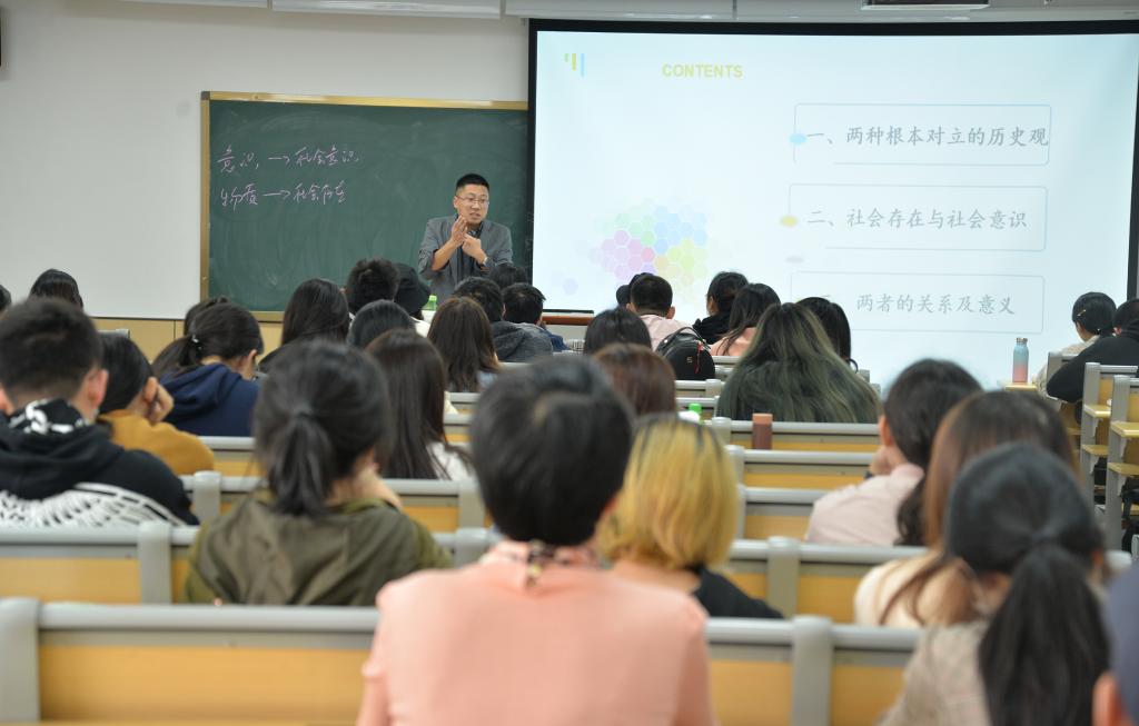 课上,司博士从“两种对立的历史观”、“社会存在与社会意识”、两个方面进行了阐释。司博士博闻强记,教学语言幽默,教学内容娴熟接地气,教学态度认真,以案例与理论讲解相结合的教学方式讲授课本知识,达到了优良的教学效果,展示了天美传媒