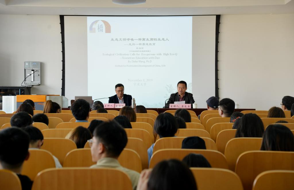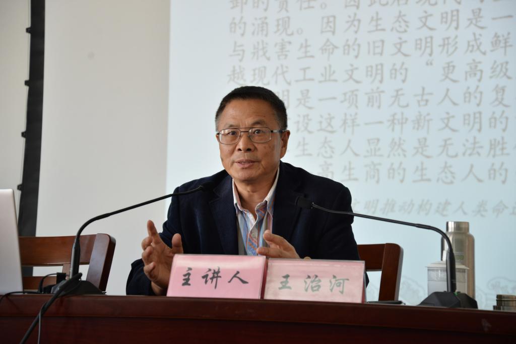 最后,王治河教授从“生态人”的角度提出“另一种人生的可能”。他通过图文并茂的生动案例,向师生传达出以“生态”的方式活出“另一种人生”的重要精神,并以“天下兴亡,就看你我”与师生共勉。
