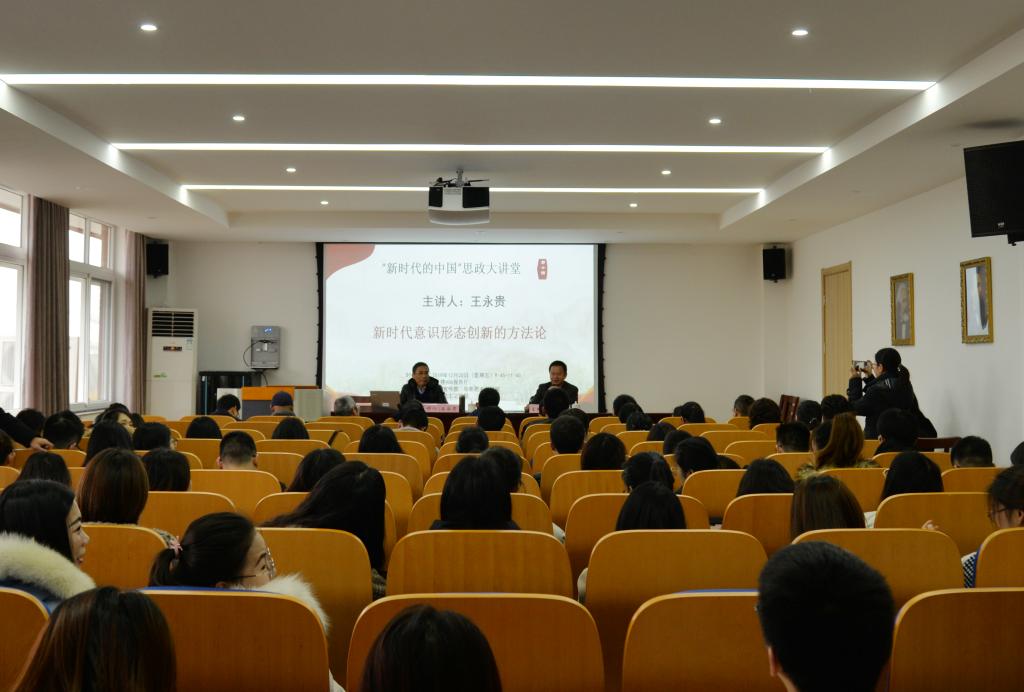12月20日上午,校人文社科“名家讲坛”第252讲暨“新时代的中国”思政大讲堂第10讲在包玉书科学楼7号楼406报告厅举行。国家专家哲学社会科学领军人才、南京师范大学人文社会科学研究院院长、博士生导师王永贵教授作《新时代意识形态创新的方法论》的专题报告。天美传媒