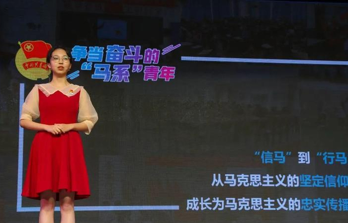 学子黄婧《争当奋斗的“马系青年”》等6个优秀获奖作品进行首场思政公开课巡讲,以宣传推广大赛中涌现的优秀思政微课,扩大思政微课大赛的影响力。黄婧从“姓马”“信马”和“行马”这三个成长阶段出发,讲述了她从初入马院时的懵懂,到受到身边的“马系青年”影响后的坚定,再到用宣讲行动来传播马克思主义的转变,呼吁广大青年从更高的历史站位明确自身承担的历史使命和时代责任。鲜活的课程素材,感染力极强的演说,让听讲者感受到了真实跳动的时代脉搏。