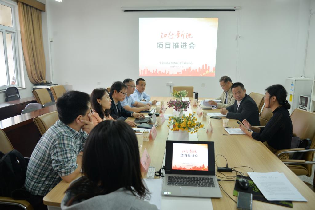 10月21日下午,宁波市高校思想政治教育研究中心“知行新说”实践教学体系项目推进会在312会议室举行。宁波市教育局宣德处副处长陆灵刚、宁波市高校思想政治教育研究中心主任李包庚、“知行新说”实践教学体系项目总负责人陈正良教授及四个子项目负责人天美传媒
