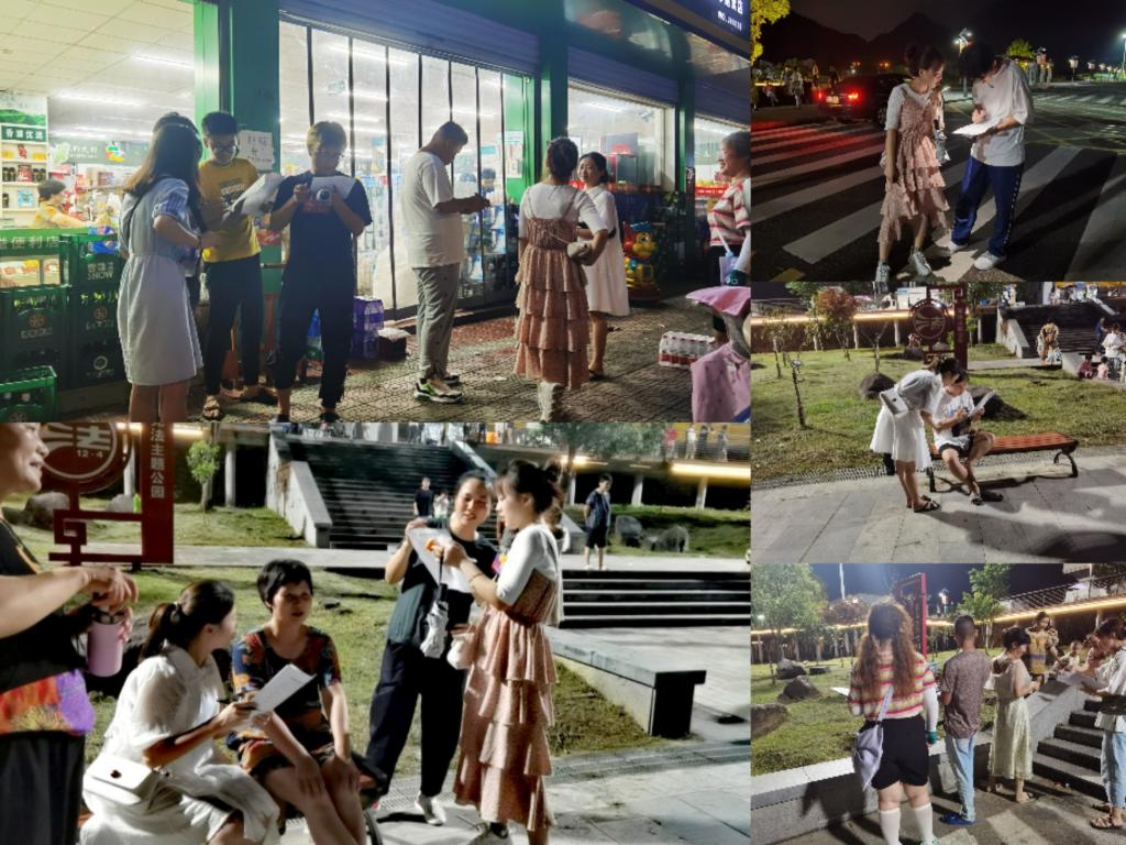 傍晚左右,团队走进街道乡村,以党建引领富民强村发展状况为主题进行实地调研。在当地村民们的积极配合下,团队成员顺利完成200份左右调查问卷。