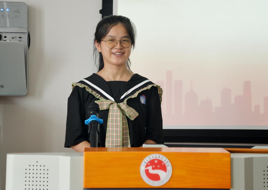 随后,优秀新生代表任巧丽同学围绕“潜心问道,虚心求教”“珍爱自己,珍爱同学”“饱含热情,守望国家”三方面内容作了发言,号召全体同学争做有气度有温度的新时代马院新青年。