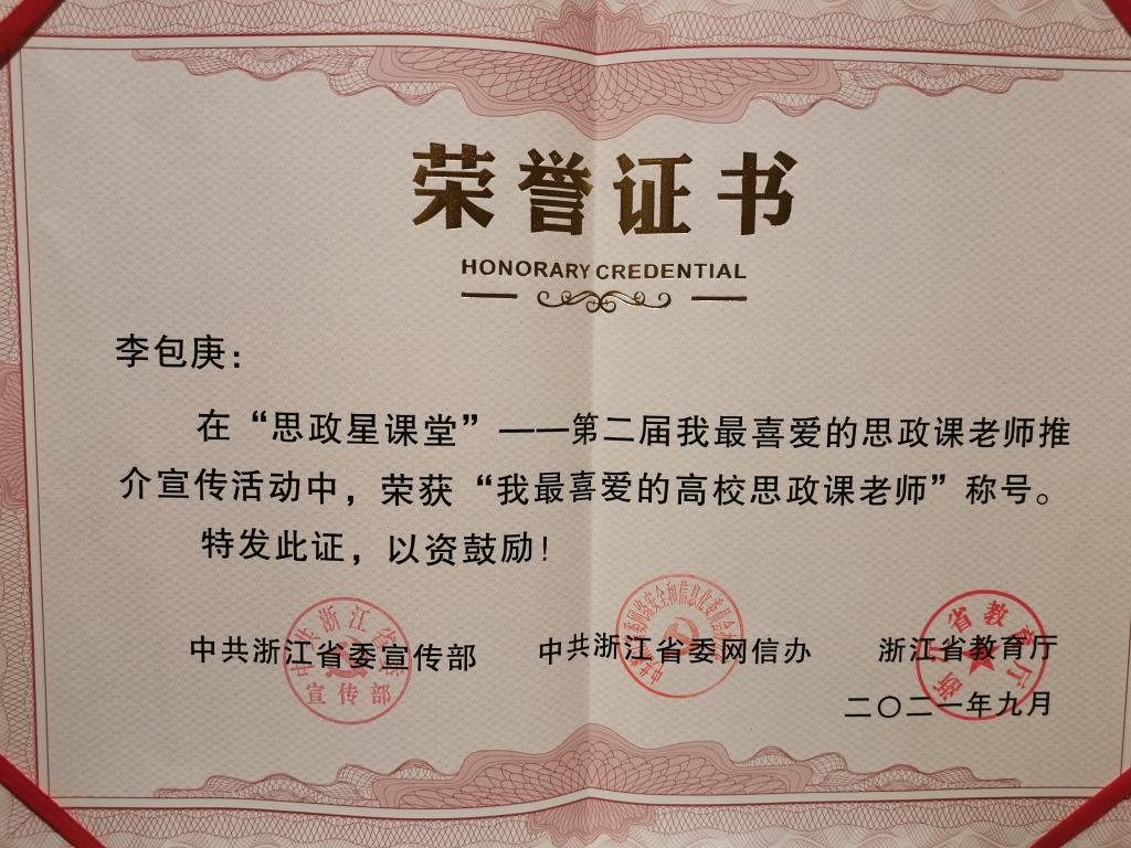 执行院长李包庚被评为“我最喜爱的高校思政课老师”。