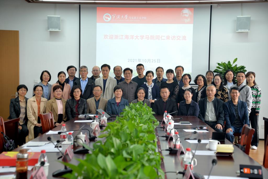 的党建与思想政治工作、学生工作等情况。李包庚就学院人才培养、学科建设等情况作了介绍。曲蓉就本科专业建设、思政课教学改革作具体说明。各教学中心主任介绍了思政课程建设情况。贝静红介绍浙海大马院基本情况,介绍了学科专业建设和思政课教改情况。