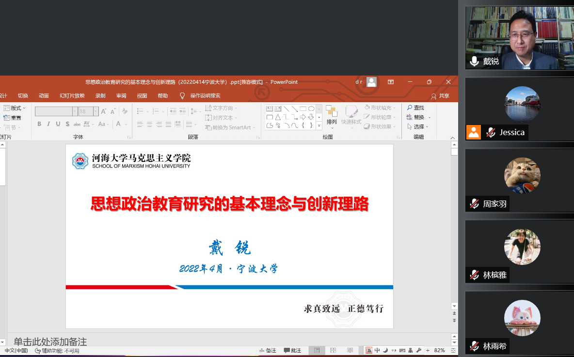 师生作《思想政治教育研究的基本理念与创新思路》线上学术报告。执行院长李包庚主持了报告会。