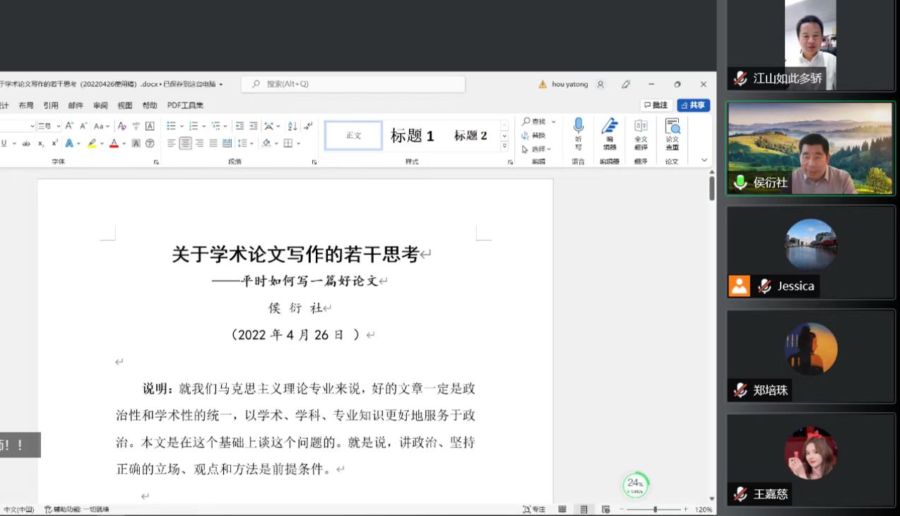 博士生导师侯衍社教授应邀以《关于学术论文写作的若干思考》为题,作学术交流分享的云报告。这也是天美传媒