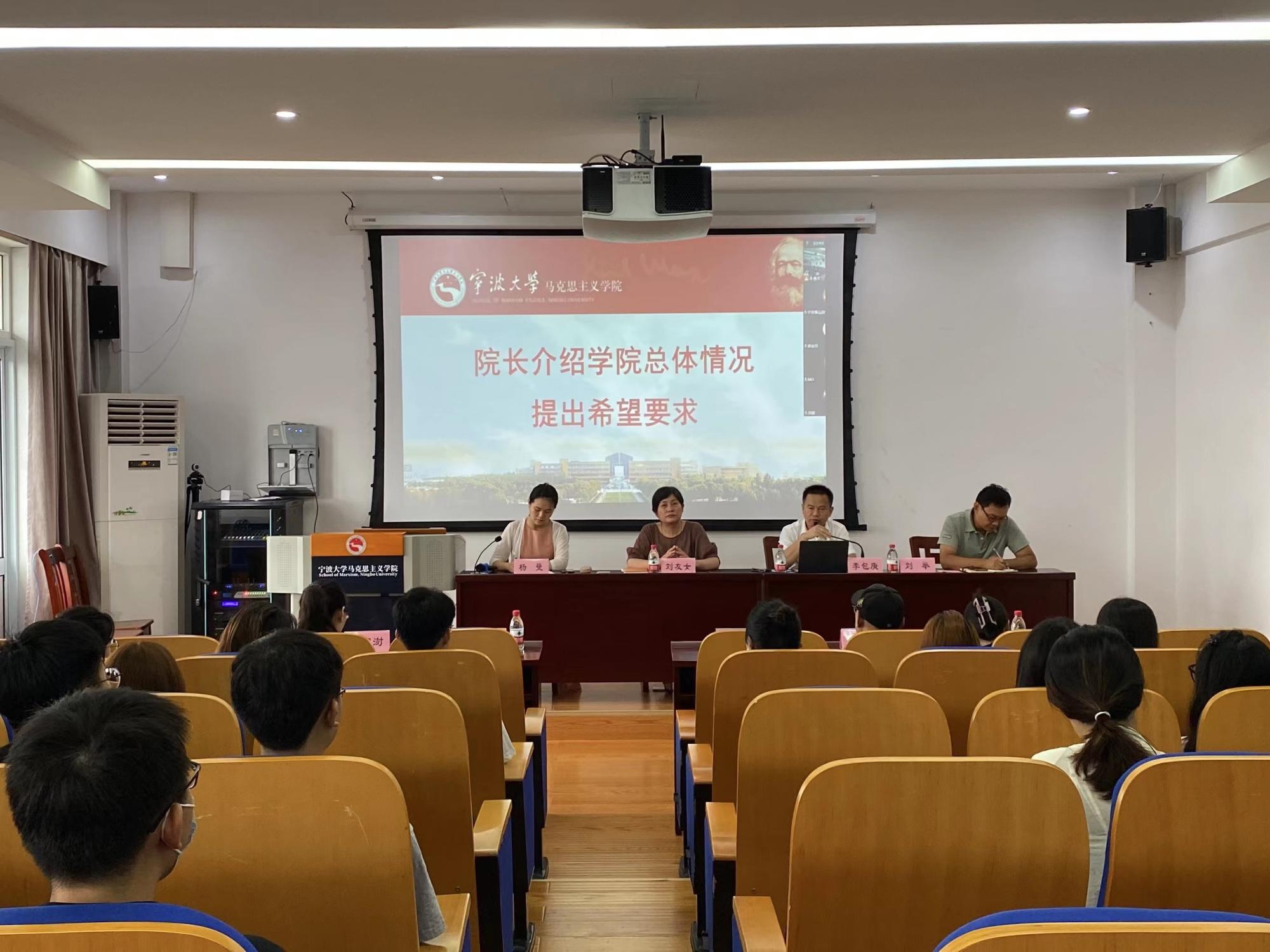 2022级研究生始业教育在406报告厅举行。院党总支书记刘友女、执行院长李包庚出席会议并讲话,副院长刘举以及学院相关工作负责人参会。辅导员杨曼主持了会议。