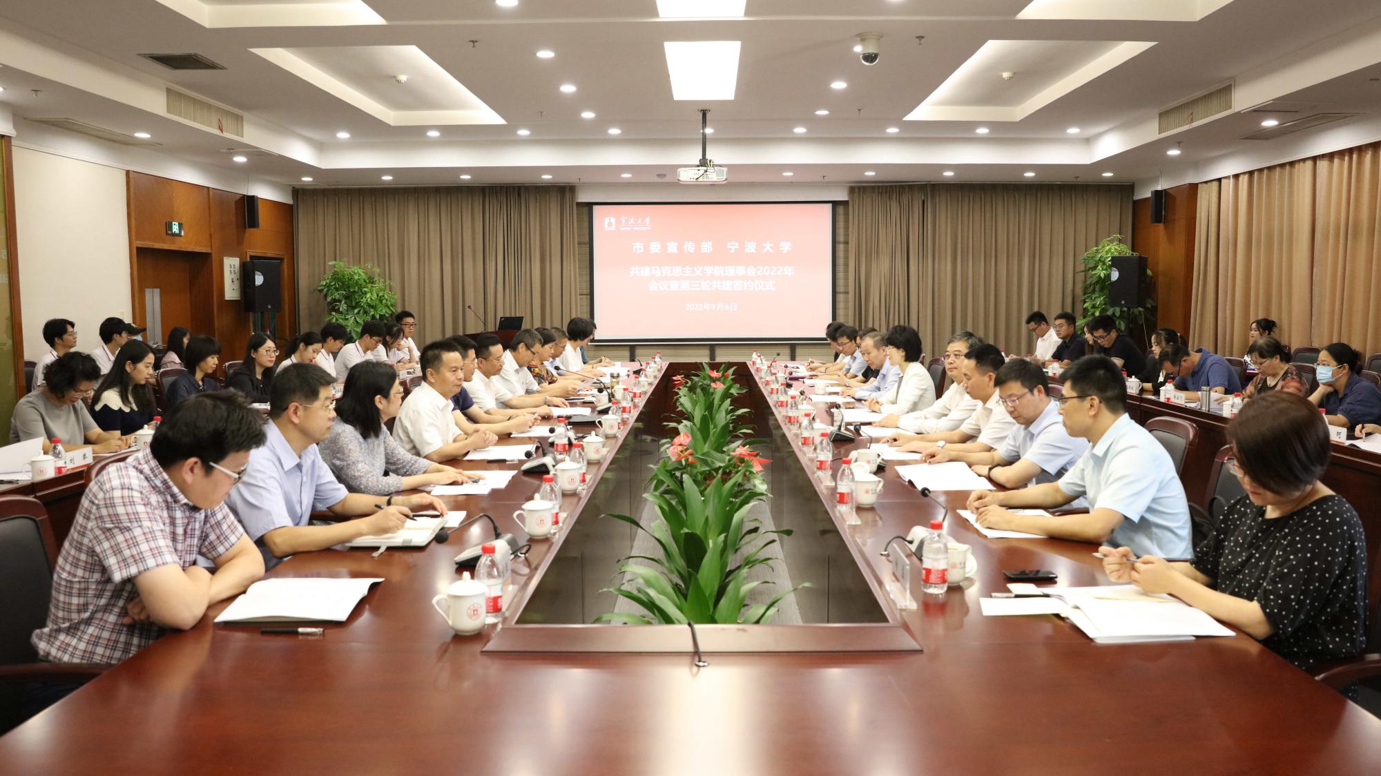 理事会2022年会议暨第三轮共建签约仪式举行。宁波市委常委、宣传部部长金彦,市委宣传部常务副部长徐方,市社科院院长傅晓,市委宣传部副部长胡文飞,市教育局党委副书记徐文姬,天美传媒