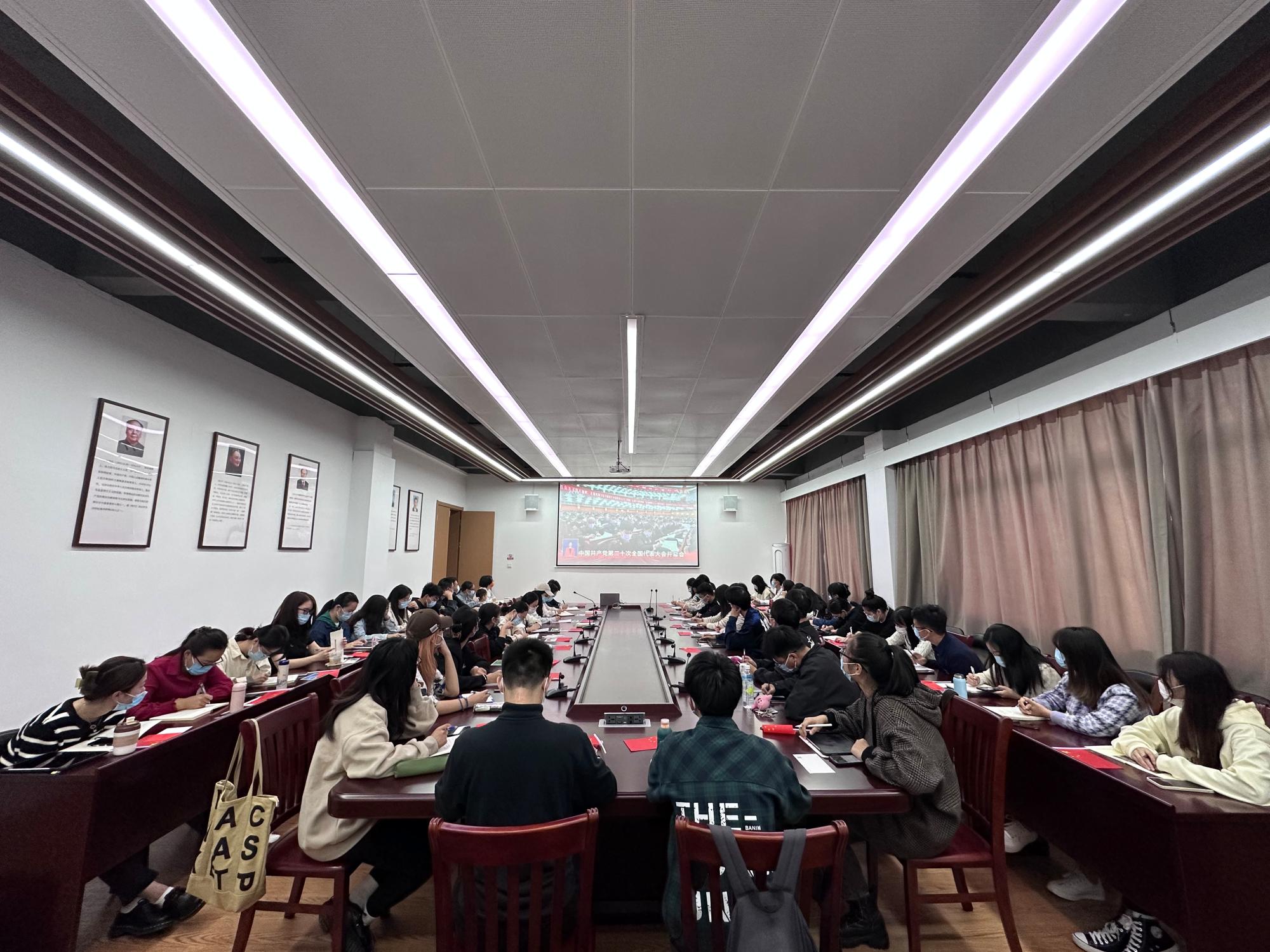 钟薇薇(本科生):作为一名马院人,与全院党员们一起见证这一重要的历史时刻、共同学习总书记所作的报告精神,我倍感振奋。两个小时里,每每听到总书记报告中提出的新观点、新表述、新议题,我都十分激动。无论是“党找到了自我革命这一跳出治乱兴衰历史周期率的第二个答案”、“中国共产党为什么能,中国特色社会主义为什么好,归根到底是马克思主义行,是中国化时代化的马克思主义行”,还是“以新安全格局保障新发展格局”,这些新的提法都是我们需要重点关注,并结合专业知识进行深入学习。