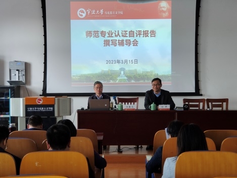 会上,学院邀请了郑春龙研究员根据教育部高等教育教学评估中心发布的《普通高等学校师范类专业认证自评报告撰写指导书》和《浙江省普通高等学校师范类专业认证工作指南》精神,并结合自己作为师范类专业认证专家参与认证的工作经验和体会,详细解读了认证自评报告中8个一级指标39个二级指标的达成情况、主要问题和不足、改进举措的撰写要点,指出应予以特别关注的重点和难点。