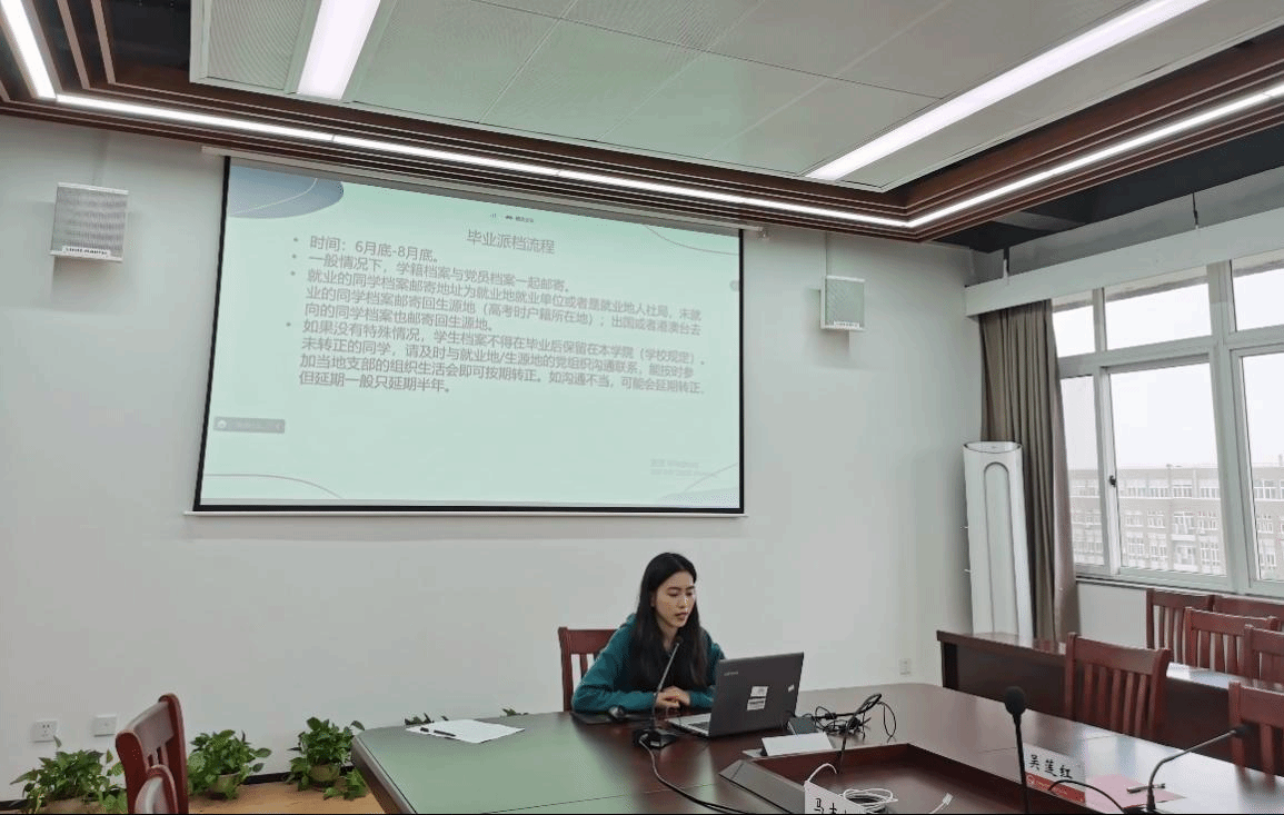赵怡楠分析当前就业形式,并做出指导:第一,进行时间规划,做好提前准备;第二,树立正确的就业观念和就业期望值;第三,适应新形势,打好准备仗。最后她表示,学工办的大门随时为每一个需要帮助的同学敞开,随时愿意为大家提供各方面的指导!