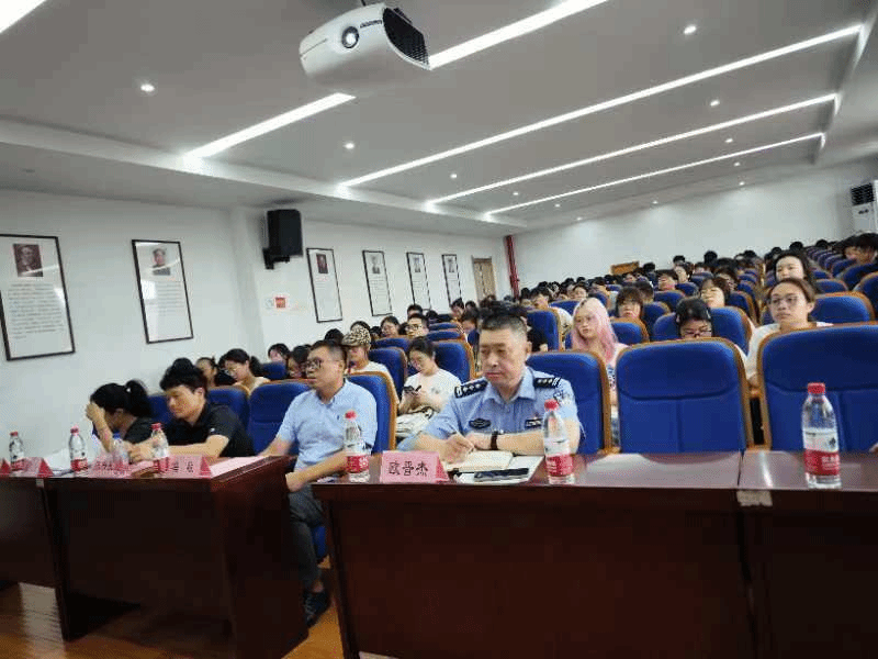 派出所政工负责人欧晋杰从“裸聊、高价收购游戏账号、刷单”等几个典型案例为同学们讲解电信网络诈骗的隐蔽性和危害。同时,让同学们提高警惕,远离“帮信罪”风险。最后,为女生们分享了轨道偷拍的几种常见手段和防范措施。欧晋杰深入浅出的讲解,师生们深感受益。