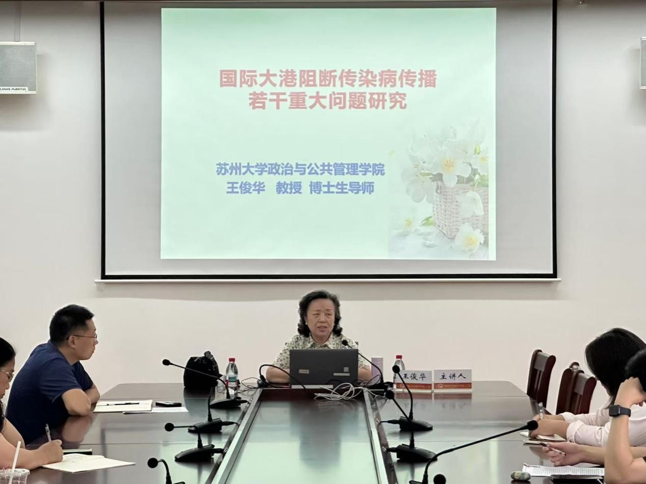 2025年6月7日下午,我院“新时代的中国”大讲坛2025年第8讲在包玉书科技楼7号楼513报告厅举行。苏州大学政治与公共管理学院王俊华教授应邀为我院师生作了题为《国际大港阻断传染病传播若干重大问题研究》的专题讲座。讲座由学院党委委员司强主持。