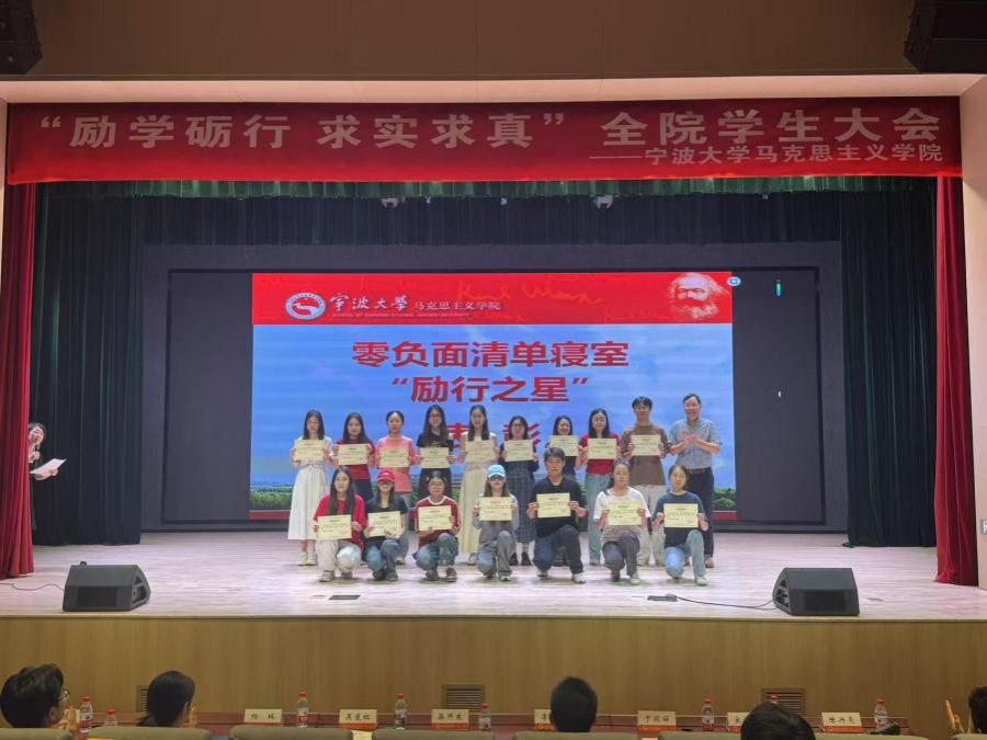 随后进入“励学励行”表彰环节。蒋书记为在“零负面清单寝室”评选中表现突出的“励行之星”颁奖,表彰他们在遵守校纪校规、维护寝室文明方面的模范行为。李院长为2025年1-9月,每月图书馆入馆时长前十名的“励学之星”颁发荣誉,鼓励同学们以他们为榜样,静心钻研、勤学不辍。表彰不仅是对优秀学子的肯定,更是对全院学生“励学砺行、求实求真”的积极引导。