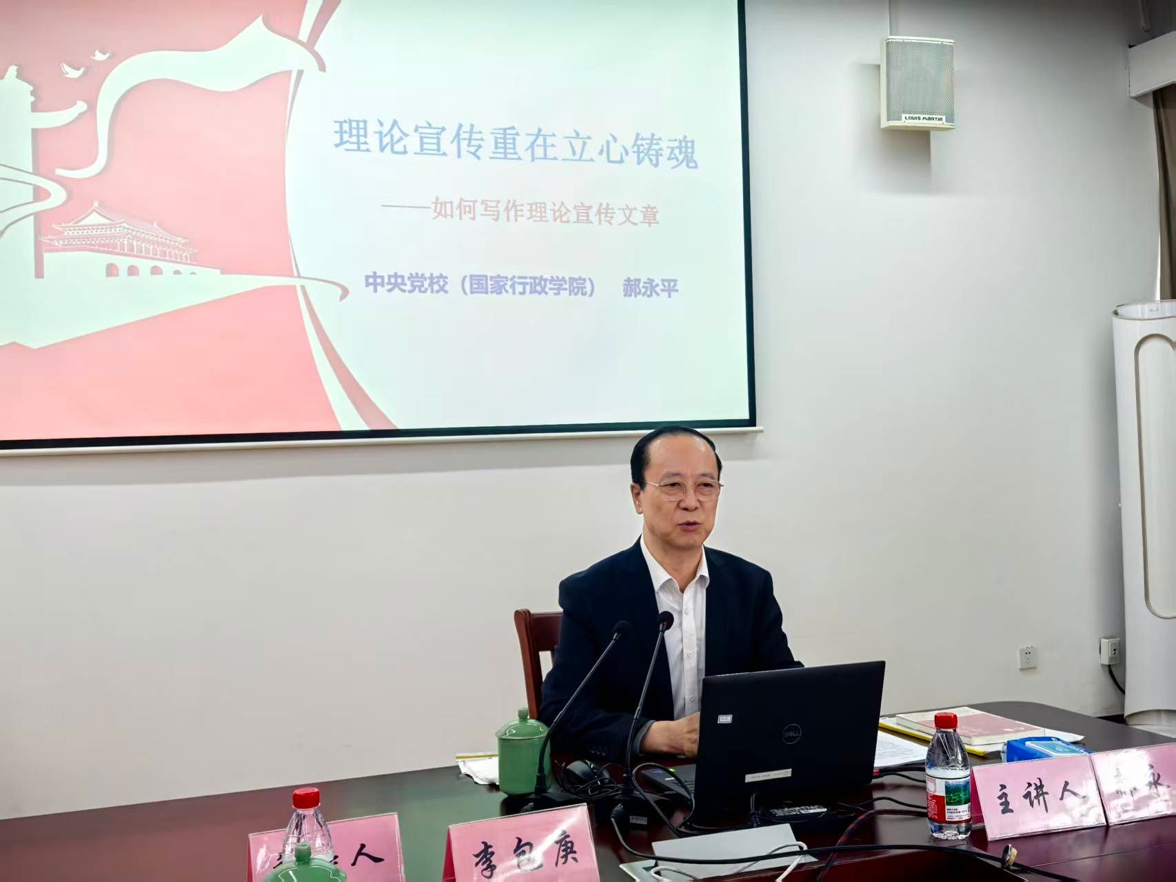 报告指出,理论宣传是党的宣传思想文化工作的重要载体,其核心在于将党的创新理论转化为群众听得懂、能认同的话语,而理论宣传文章则是实现这一目标的关键抓手。郝永平教授强调,写作理论宣传文章需把握四大核心环节:一是把握政治站位,精准领会习近平总书记关于宣传思想文化工作的重要论述,以“是什么”“为什么”“怎么办”展开生动探讨,并学习习近平文化思想;二是领会基本前提,以长期积累与深入思考来精准选题,聚焦“国之大者”、“党之大者”,关注具有理论意义和实践意义的问题,并运用自身专业基础的问题。三是抓住关键环节,通过主题引领、逻辑贯通、重点聚敛、意义揭示、历史追溯、辩证分析、理论批判、深度挖掘等方面挖掘思想深度与论述新意;四是在精细把控中体现认真态度与严格要求,通过讲解把握好宣传重点与非重点的关系、文章共性与个性的关系、选题宏大与细小的关系、学理分析缺乏与过度的关系、及时发声与自负责任的关系、引证权威与合理的关系、语言规范性与生动性的关系、字数长与短的关系八个方面,实现内容的“精装修”。郝永平教授的讲解兼具理论高度与实践温度,既为理论宣传文章写作提供了明确的方法论,更明确了核心方向,在场师生都深受启发、受益匪浅,极大增强了广大师生深耕理论宣传、传播真理力量的使命感与行动力。