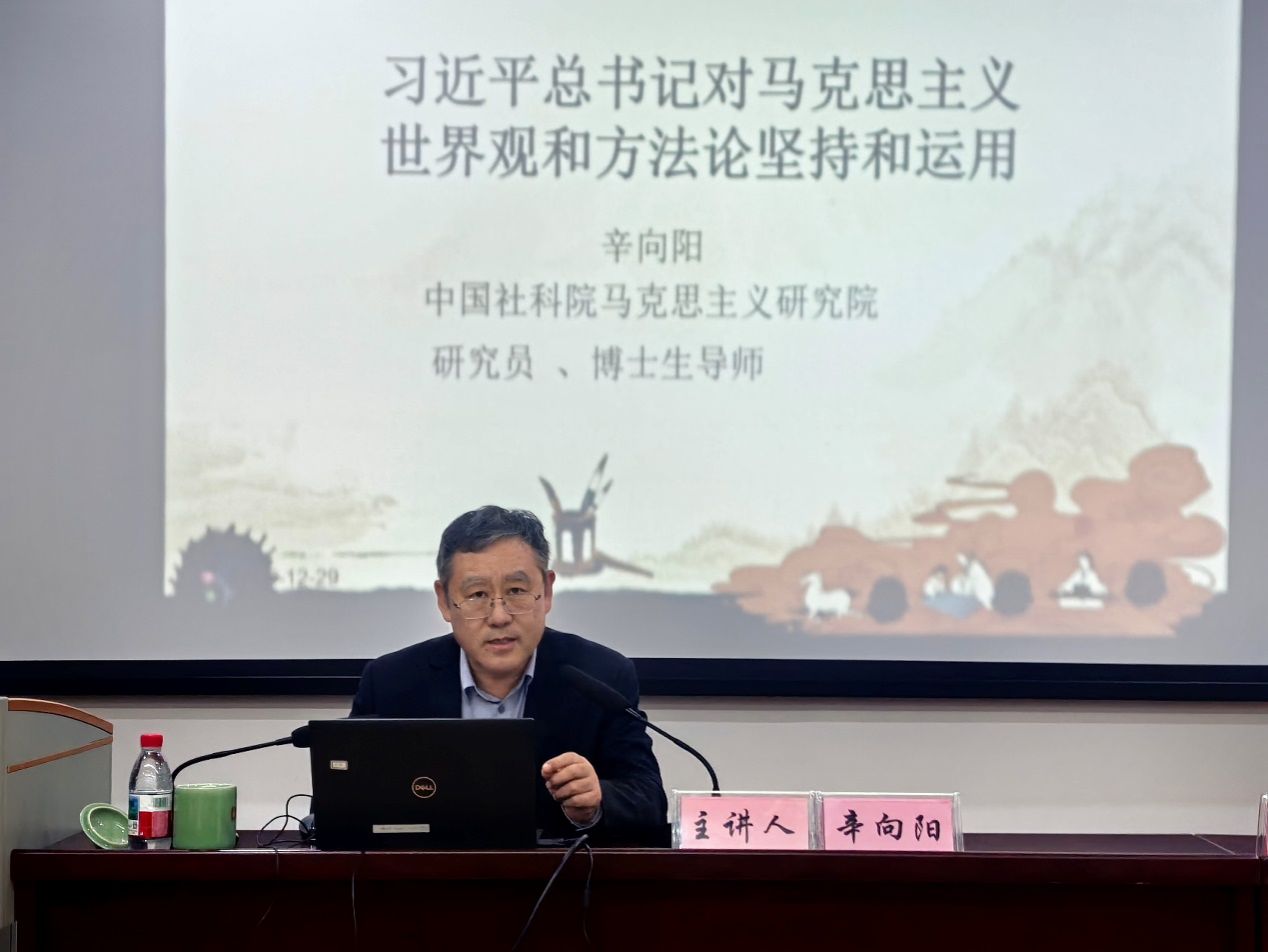 2025年12月29日晚,我校人文社科名家讲坛522讲暨马克思主义学院“新时代的中国”大讲坛2025年第17讲在包玉书科技楼7号楼406报告厅顺利举行。中国社科院国家文化安全与意识形态研究中心主任、中国社科院大学马克思主义学院院长辛向阳教授应邀为我校师生作了题为《习近平总书记对马克思主义世界观和方法论坚持和运用》的学术报告。讲座由马克思主义学院院长李包庚主持。