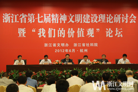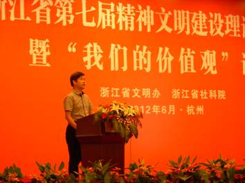 2012年6月1日,由省文明办、省社科院主办的浙江省第七届精神文明建设理论研讨会暨“我们的价值观”论坛在杭举行。省委常委、宣传部长茅临生出席开坛仪式并讲话,中央文明办秘书组组长蒋希伟参加论坛并致辞。