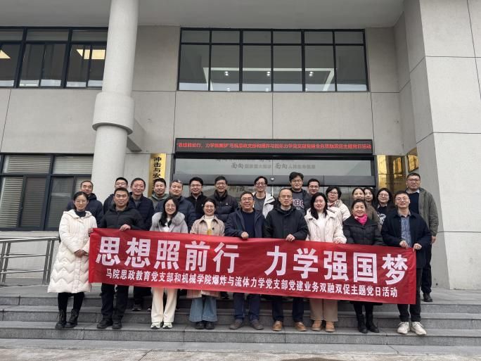 2024年12月25日下午,为积极响应党中央号召,深入学习习近平总书记在纪念乔石同志诞辰100周年座谈会上的讲话精神,思想政治教育教师党支部、爆炸与流体力学党支部在航海楼501会议室联合开展“思想照前行,力学强国梦”党建业务双融双促主题党日活动,活动由全国高校“双带头人”教师党支部书记“强国行”专项行动爆炸团队负责人王永刚主持。