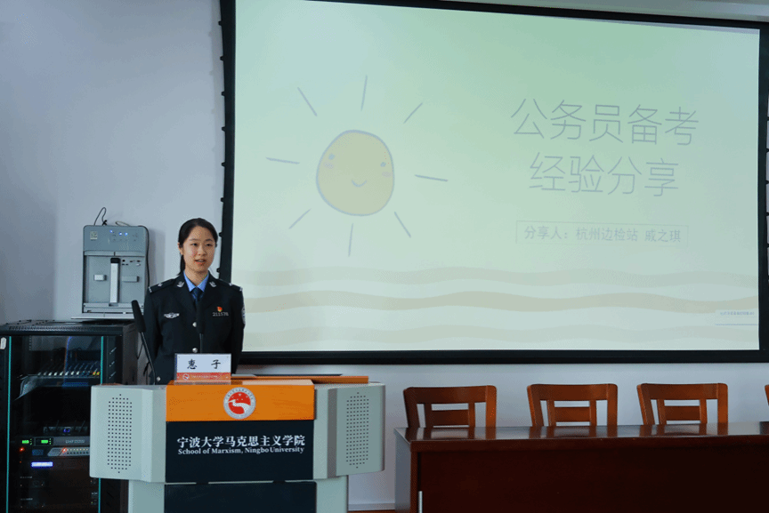 校友戚之琪围绕公务员考试备考及边检职业发展展开经验分享。首先,她系统解析边检工作核心内容,包括口岸执法、内勤保障及政工宣传等职能,为在场同学提供职业规划参考。其次,戚之琪介绍了笔试各模块备考要点,如行测各模块策略、申论积累方法,以及面试形式、题型与备考方法。同时强调了公务员备考的过程中注重心态调整的重要性。