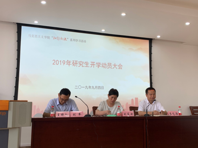 为了使研二研三的同学们明确自己的学习目标,保持良好的学习心态,9月4日,在7号楼406,马克思主义学院开展了2019年研究生动员大会,参会人员有党委书记刘友女、院长李包庚、副院长刘举、研究生部主任孟献丽、邹建峰老师、郑善庆老师、2018级研究生和2017级研究生。