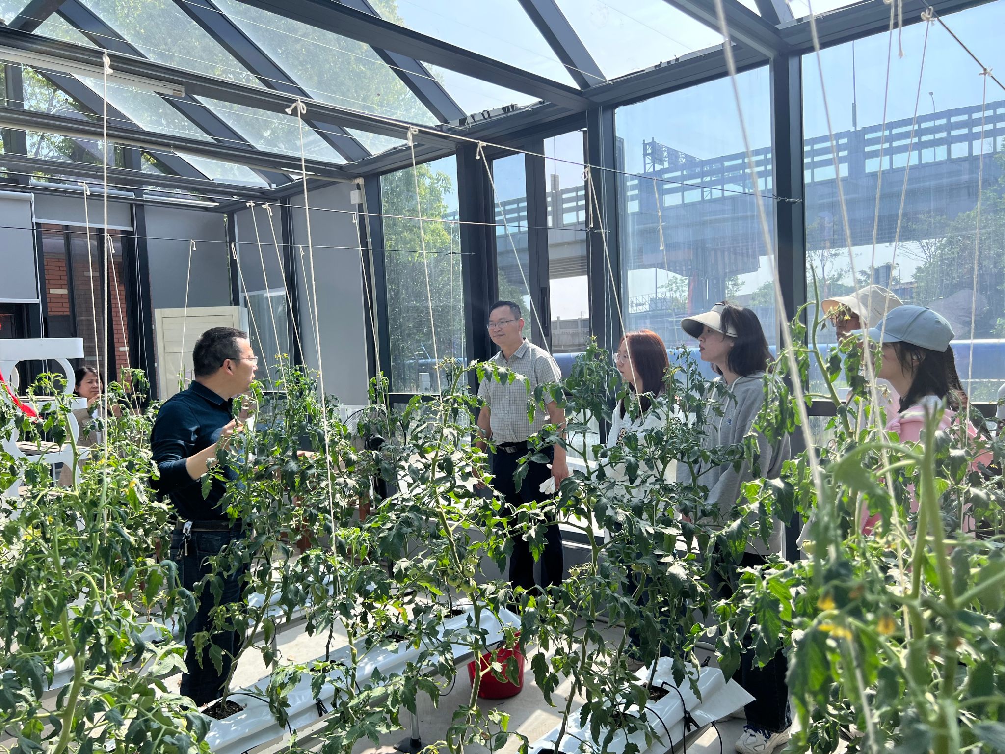 最令同学们印象深刻的则是生菜的无土栽培技术展示区,只见一排排生菜整齐地生长在特制的设备中,根系浸泡在营养液里,长势喜人。“生产力的总和决定着社会状况,当代劳动教育必须与科技创新深度融合。”在这一环节中,同学们不仅深刻感受到现代农业科技与劳动教育的深度融合,也打开了劳动教育创新实践的新思路。