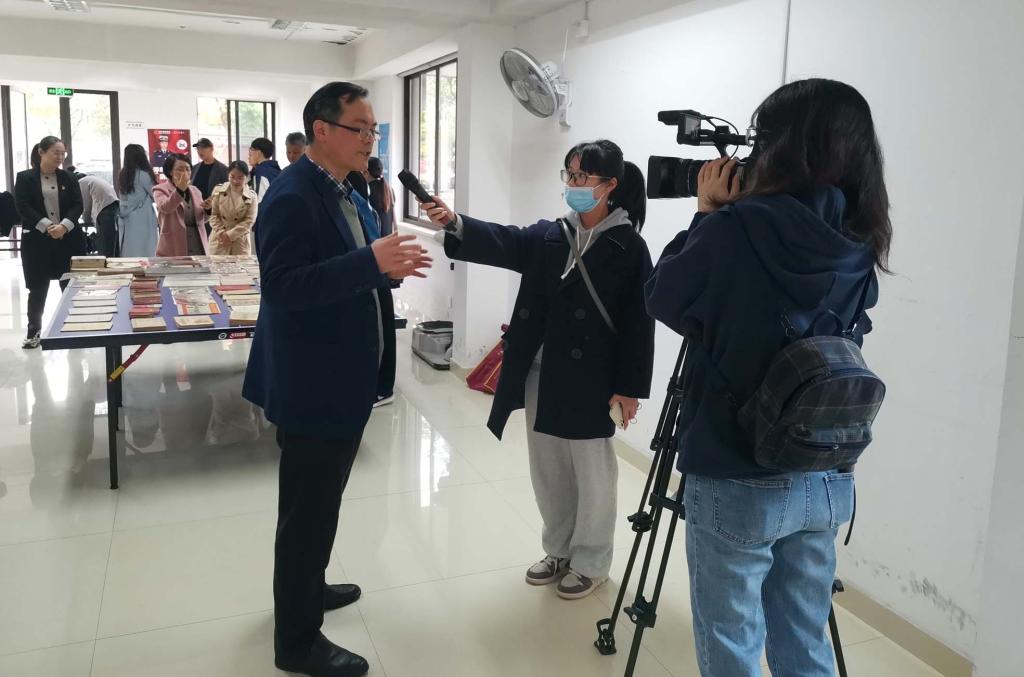 此次活动旨在通过高校与社区支部的联合行动,融合高校和社区的力量,组织开展主题作品征集,增强党史宣传教育的实效性和感染力。江北区新闻媒体对鲍展斌教授进行了现场采访。