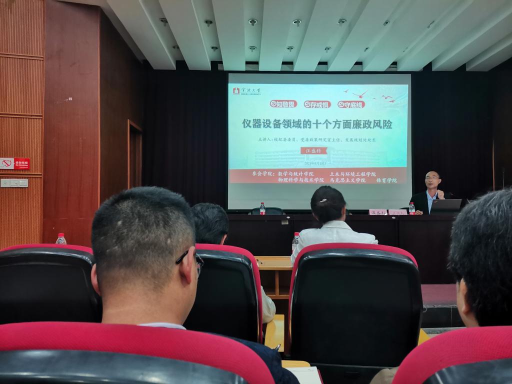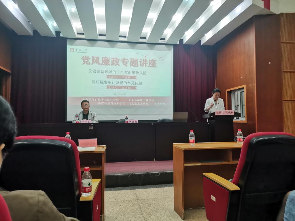 5月19日下午,为深入贯彻全面从严治党的要求,进一步推进“清廉宁大”和“清廉学院”建设,马克思主义学院和数学与统计学院、土木与环境工程学院、物理科学与技术学院、体育学院等5院联合,邀请校纪委委员、审计处处长翁光聪和校纪委委员、党委政策研究室主任、发展规划处汪盛科处长,为各学院教师带来了一场党风廉政教育专题讲座。