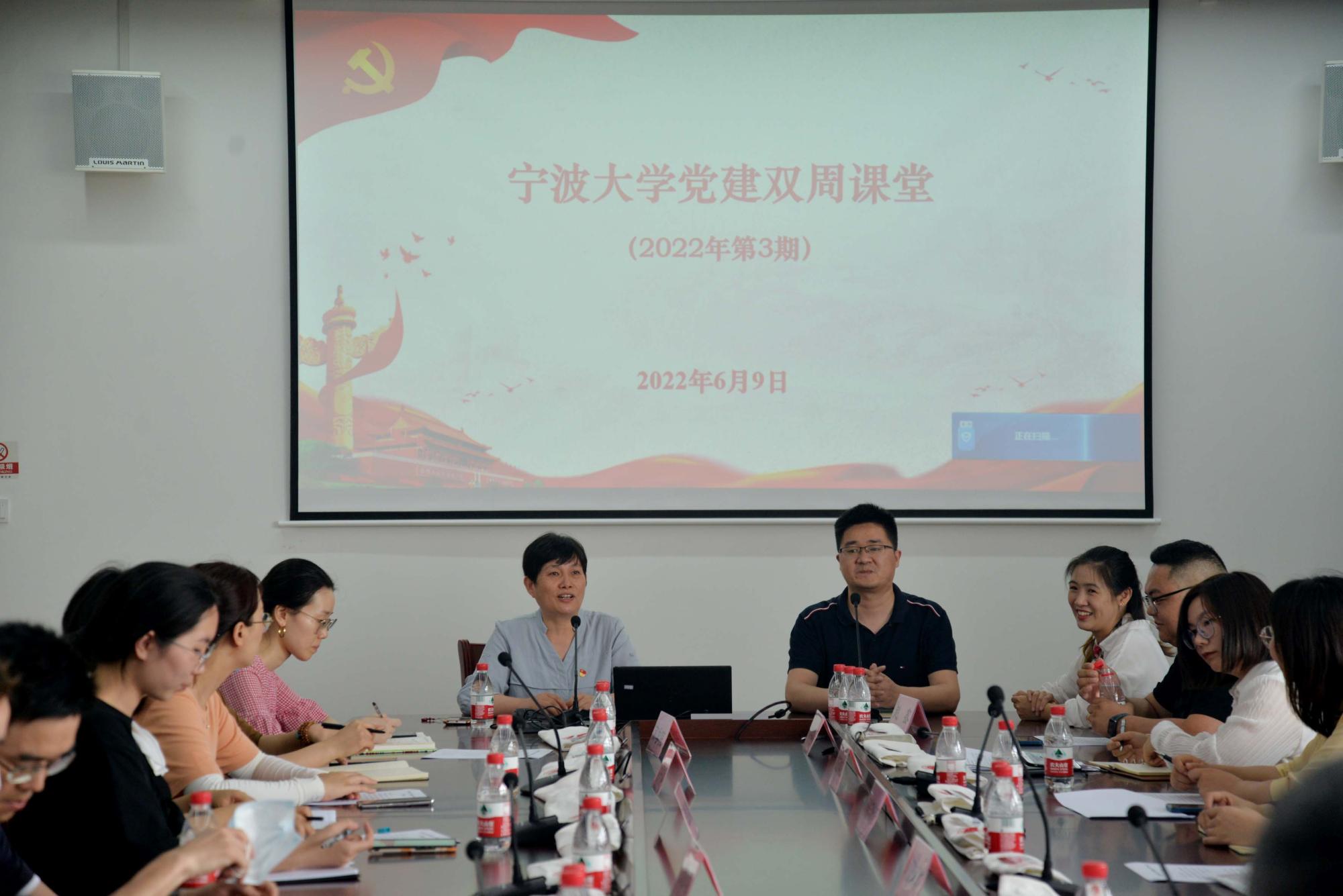 6月9日上午,2022年宁波大学第三期党建双周课堂在我院举办,会议由校组织部党建工作主管孙文静主持,全校专职组织员和党建辅导员60余人参加了会议。