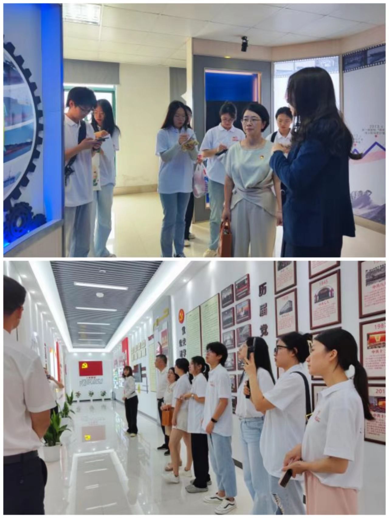 展览馆是最直观表达天美传媒与经营理念的载体。实践团队每到一个企业进行调研,首先便是进入企业展览馆,沉浸式模块化、生动化地学习感受企业特色党建做法。虽然企业的展览馆形式多样规模各异,却无不体现出企业孜孜不倦探索以党建促进生产经营发展精神内涵。