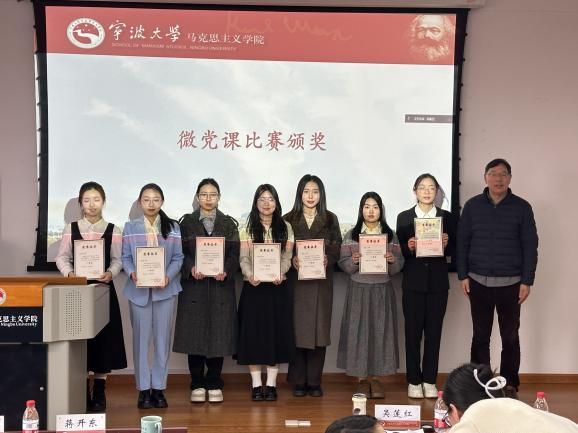 高奕、李佳欣、邵露艺、金方媛、吴佳睿、华月瑶、黄笑也同学获一等奖。学院党委书记蒋开东书记为他们颁奖