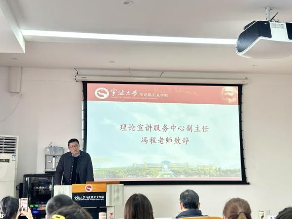 理论宣讲服务中心副主任冯程寄语。冯程老师强调宣讲团成员要深刻把握理论宣讲的重要意义、深刻认识青年与理论宣讲的关系、深刻把握理论宣讲和社会实践的关系,在奋斗中为中国式现代化贡献理论宣讲青年的青春力量。