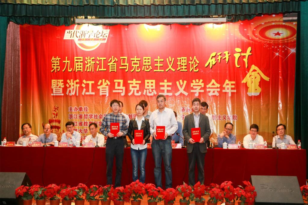 在人才培养、学科建设、科学研究及社会服务方面所取得的成绩。宁波市委常委、宣传部部长万亚伟在致辞中,对本届马克思主义理论研讨会的召开表示衷心祝贺,并介绍了宁波积极推进“双驱动四治理”,全力打造港口经济圈等情况,希望我省马克思主义理论工作者积极关注宁波经济社会发展实践,并帮助提供理论上的凝练指导。副会长汪俊昌宣读了浙江省第九届马克思主义理论研讨会征文获奖名单。大会对荣获一、二、三等奖的论文作者进行了表彰。