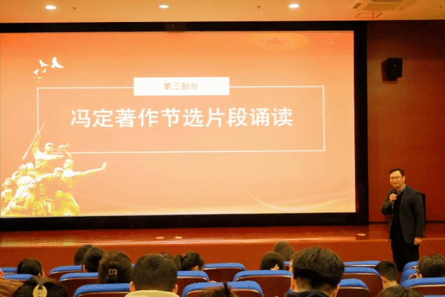 刘举教授的深度解读将活动推向高潮。他以冯定《青年应当怎样修养》为脉络,用文本细读方式剖析当代青年的精神成长。“冯定先生将‘牺牲’定义为‘克服困难而非逃避挑战’,这与‘躺平’‘内耗’等现象形成鲜明对比。”他引用文中“虽死无悔”的论述,强调“人生的意义在于推动时代车轮,哪怕力量微小”。现场学子专注记录。“冯定的思想像一剂清醒剂,让我们在功利浪潮中看见信仰的分量。”参与活动的22级思政教育专业学生黄思奕如是说。