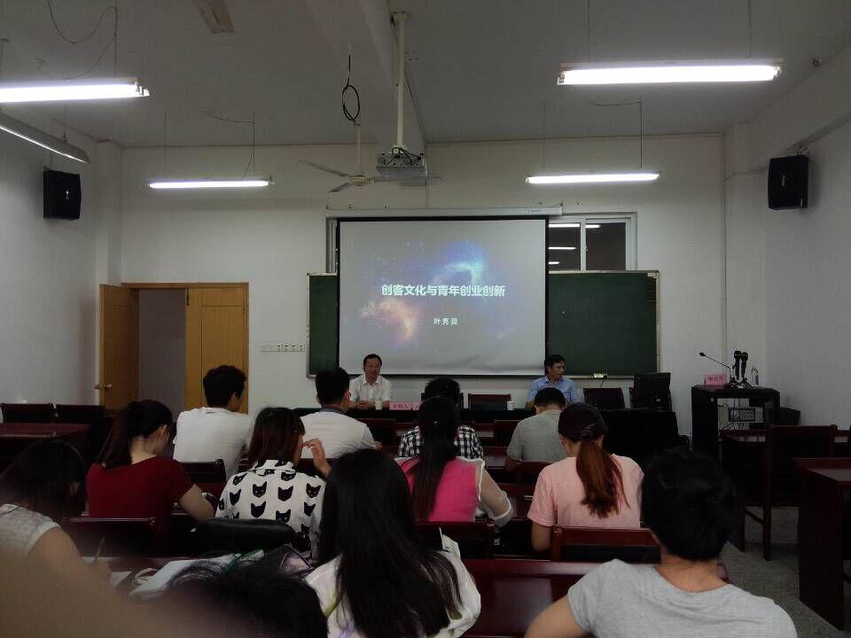 叶秀贝首先从“创客”一词的来源点出今天讲座的内容,对创客文化的名词进行了详细解讲。他指出“创客”就是指那些出于兴趣和爱好把自己的理想变为现实的人。其次,主讲人深刻分析了创客文化兴起的背景以及创业所需的条件,其中主要包括政府扶持、个人素养、时间机遇等等。他还以宁波为例,指出在宁波这样一个港口城市,像设计、信息、软件、平台服务等七个领域可以尝试创业创新。最后主讲人对年轻人创业创新提出的三点建议发人深思:第一,对于想要创业的青年来说,信念很重要。第二,想象力比知识更重要。第三,要懂得把握未来趋势,赢在前言,赢在创新。