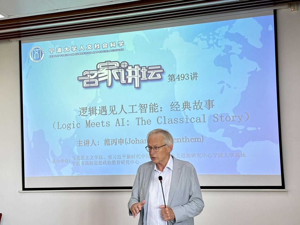 2025年9月26日上午,我校人文社科名家讲坛493讲暨马克思主义学院“新时代的中国”大讲坛2025年第11讲在包玉书科技楼7号楼513报告厅举行。国际知名逻辑学家、美国斯坦福大学范丙申教授应邀为我校师生作了题为《逻辑遇见了人工智能:经典故事》的学术报告。讲座由马克思主义学院执行院长李包庚主持。