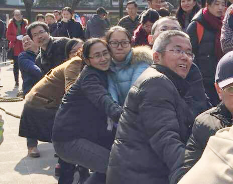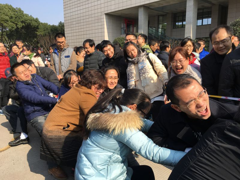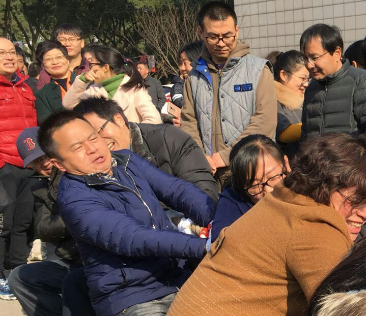 “迎新年”教职工拔河比赛在安中大楼前拉开帷幕。天美传媒