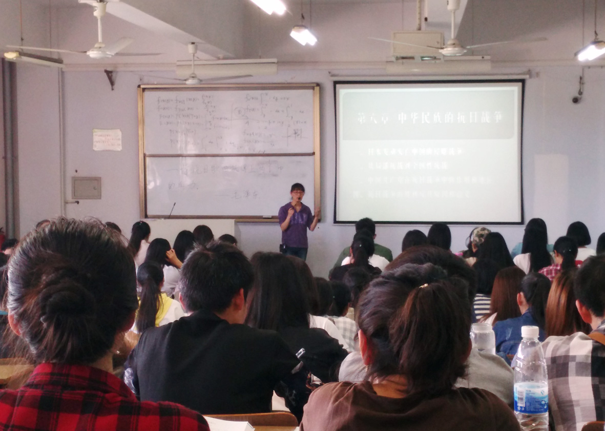 本次公开课由朱珂老师主讲,主讲课程为《中国近现代史纲要》。她首先以九三阅兵的照片导入至课堂主题:中华民族的抗日战争,随后相关视频资料的播放使学生了解了九一八事变的全过程。她抛出的“日本为什么要发动侵略战争”的问题引发了学生热烈的讨论。在与学生的互动交流之后,朱珂播放了歌曲“大刀进行曲”,并详细阐述了当时的仁人志士作的抗战努力以及从局部抗战到全面抗战统一战线的形成。最后,她通过丰富的PPT内容的展示,深入讲解了中国共产党在抗日战争中的作用和地位。