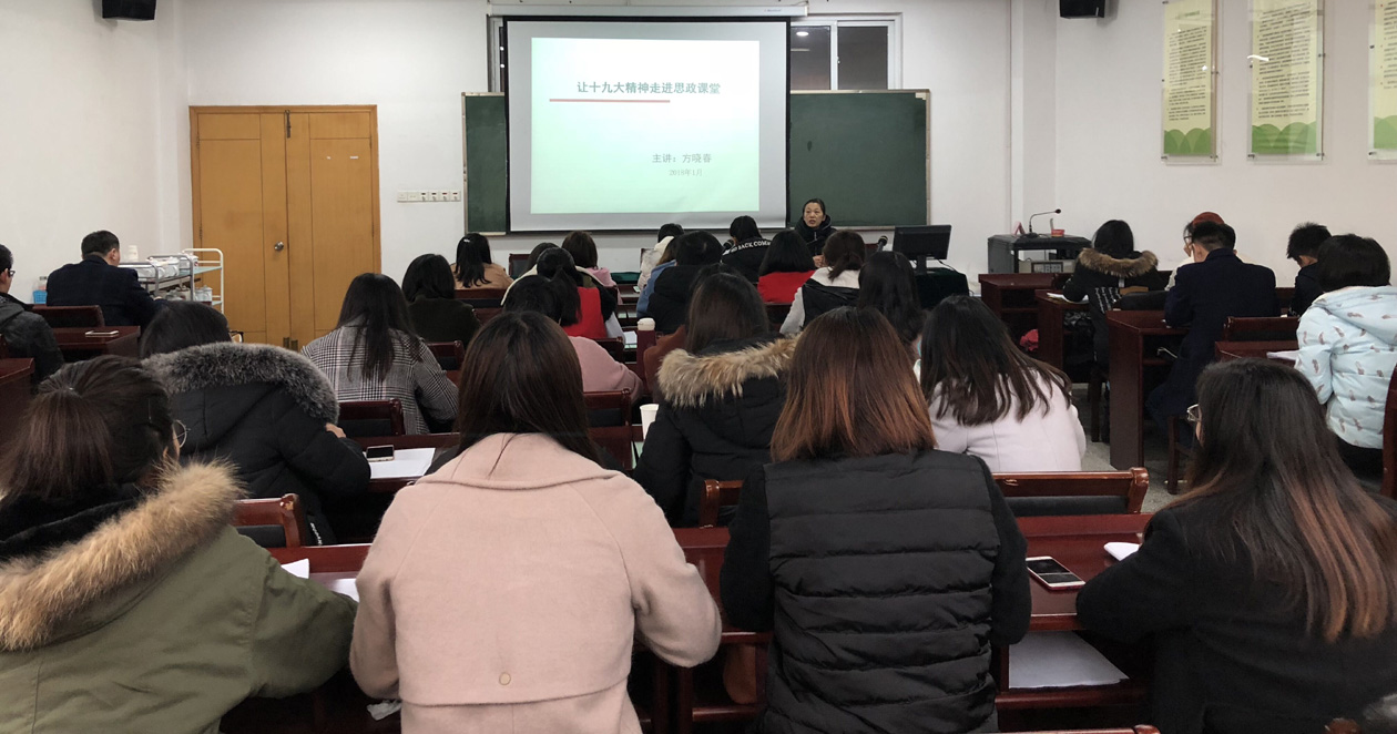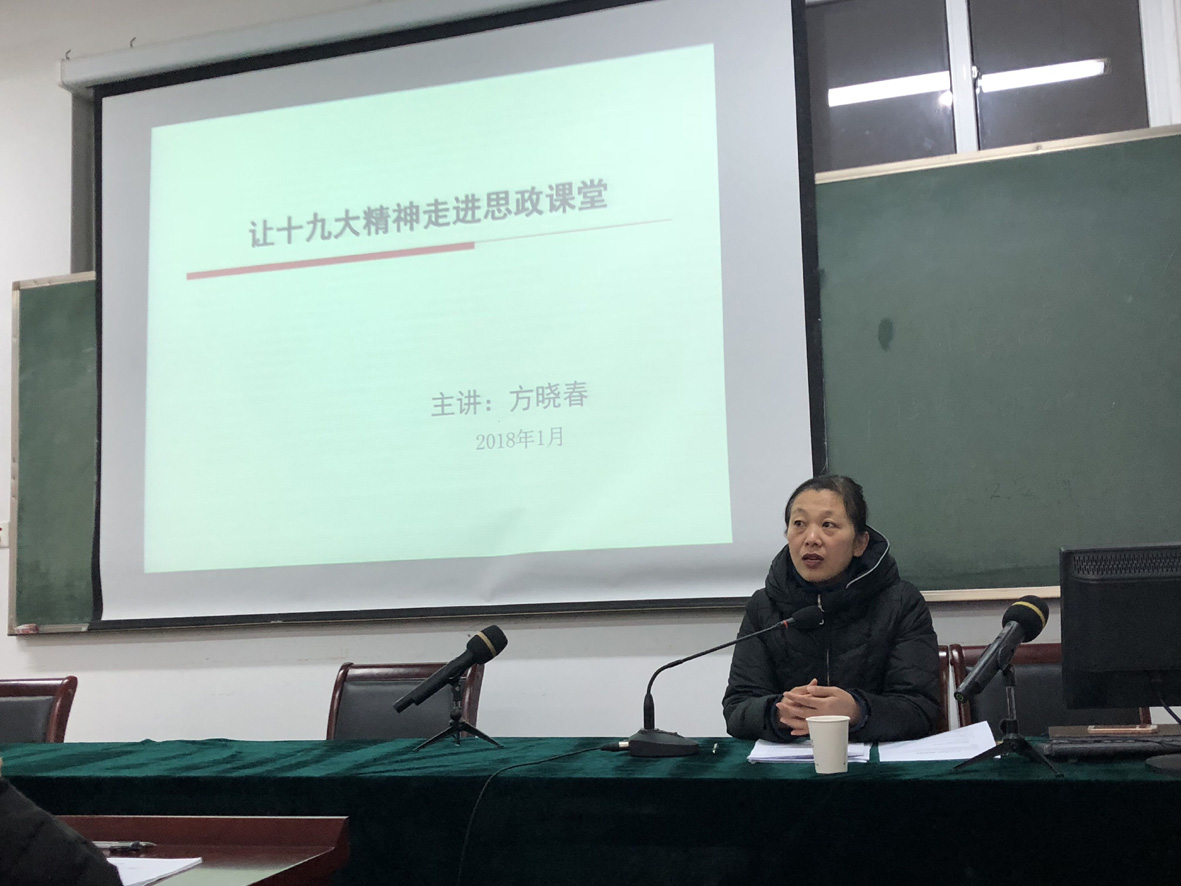 为认真学习贯彻中央和省市有关高校思想政治理论课教育教学改革意见,贯彻落实十九大精神进课堂。1月16日,学院党总支书记方晓春分别为全院教职工,学生党员、预备党员、入党积极分子带来了题为“让十九大精神走进思政课堂”的主题党课。