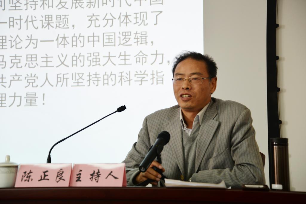 陈正良在总结中指出,郝教授的报告视野宏阔、娓娓道来,予人深刻启迪。中共是一个高度重视理论建设和以理论指导实践的政党,在长期的革命建设、改革实践中,在总经历史经验教训的基础上,中国共产党在运用马克思主义理论指导中国实践,解决中国问题上越来越“自觉”,并走向实践创新和理论创新的良性循环。改革开放以来,我们党的全部理论创新和实践创新的主题就是“坚持和发展中国特色社会主义”,中国特色社会主义就是从中国社会发展的历史进程和中国人民的伟大实践中产生出来。习近平新时代中国特色社会主义思想是马克思主义中国化创新成果,我们要在深入学习领会基础上,注重结合研究新时代的实践问题,坚定“四个自信”。