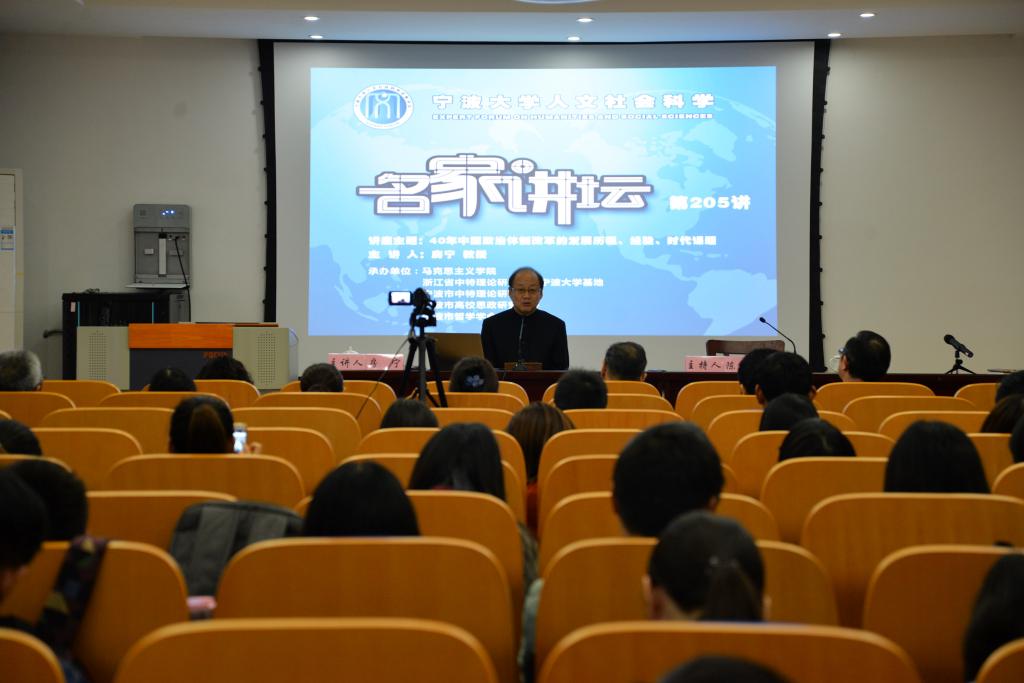 陈正良作总结发言。他表示,房教授的报告回顾了中国改革开放的历程,让与会师生对其艰巨性有了更多的认识,深受教益。40年的改革开放,中国民主政治建设经历了艰难曲折的历程,发展到今天非常不容易。这进一步说明了解决中国问题,只能依靠中国人自己去探索去实践。邓小平曾经指出,评价一个国家的政治体制是否正确,关键看国家的政局是否稳定;能否增进人民的团结,改善人民的生活;生产力能否得到持续发展。陈正良认为,民主政治建设不能过多强调形式问题,民主政治最重要的是在于一个国家确定的大政、方针、政策能在多大程度上反映人民群众的意志、愿望、利益要求。十八大报告提出“四个自信”,其中制度自信,已经经受住了40年发展和实践的检验。今后,中国政治体制改革仍然任重道远,但我们坚信,四十年的发展历程说明了中国民主政治建设也能走出适合中国国情的道路,房宁教授的报告对此提供了很多启示。