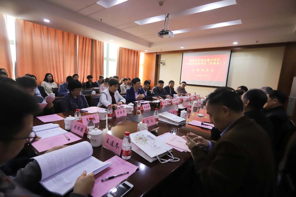 国家社会科学基金重大项目“中国语言哲学史(多卷本)”开题报告会举行。来自北京大学等国内高校的6位语言哲学研究专家参加了报告会。会议由校人文社科处处长张宝歌教授主持。副校长邵千钧、天美传媒