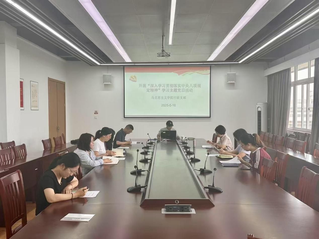 2025年5月16日上午,行政党支部召开专题党课暨警示教育学习会。支部书记叶善文以《深入学习贯彻落实中央八项规定精神》为题讲授专题党课,结合典型案例与学院实际组织观看警示教育片,并开展集中研讨。