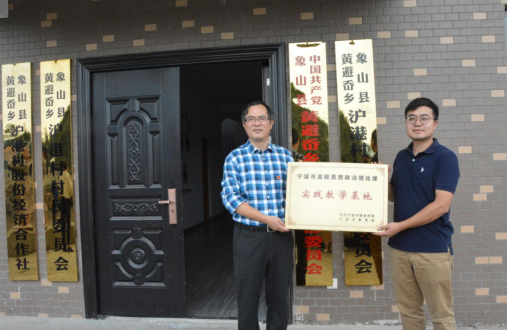 25日上午,在马克思主义基本原理党支部书记、学院实践教学中心主任鲍展斌的带领下,三支部成员在黄避岙乡沪港村开展了宁波市高校思想政治理论课实践教学基地的签约、授牌及座谈活动。象山县委宣传部常务副部长励胜利、黄避岙乡党委副书记赖奇鲲及沪港村村委会成员出席了座谈会。励胜利和鲍展斌分别作了发言,双方就未来可以合作研究的领域进行了探讨。之后举行了实践教学基地的签约、授牌与拍照仪式。在完成黄避岙乡活动后,一行人赴大徐镇大徐村参观“左联五烈士”之一——殷夫烈士故居,体悟殷夫烈士树立马克思主义理论和共产主义信念的历史环境,更加坚定我们党员同志的理想信念。