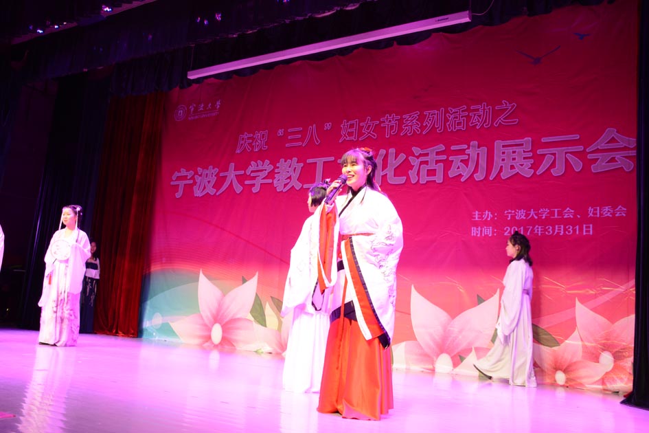“丽服缤纷展风采,美姿倩影留舞台;马家女儿多奇思,且把古装作时妆。”3月31日下午,宁波大学教工文化活动展示会在锦绣小剧场隆重举行,马克思主义学院分工会表演的节目《梦回汉唐》在强手如林的展示会上,挥洒自如,获得了广泛好评。