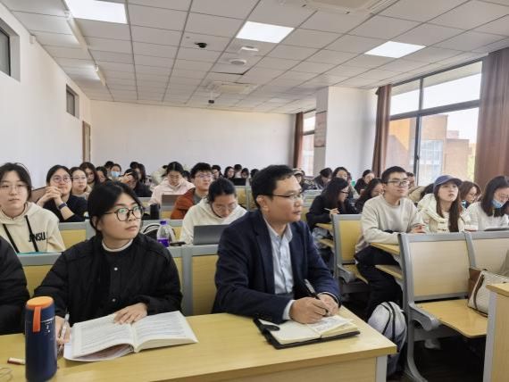授课在5号教学楼506教室进行,由课程主讲教师孙兴主持,学院副院长刘举与2023级思政班全体同学一同听课学习。任靖老师拥有丰富的中学教学实践经验和高校理论研究背景,曾担任浙江省名校镇海中学的政治学科负责人。授课伊始,任老师首先系统阐述了《中学思想政治课程与教学论》的课程性质与学习目的,为同学们构建了清晰的知识框架。