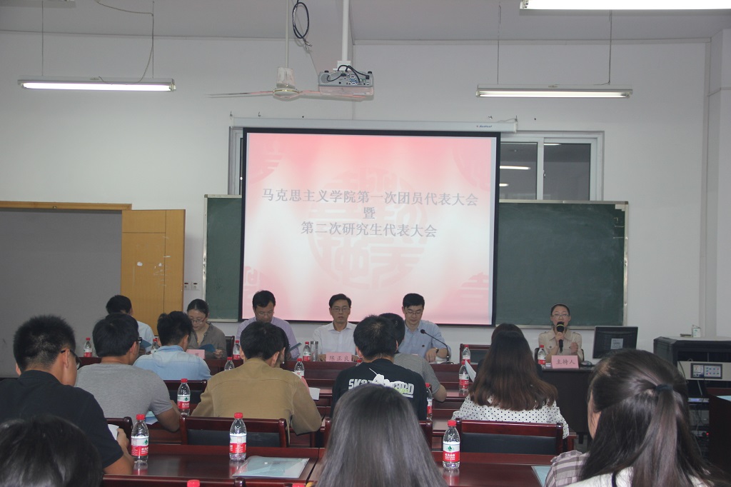 大会上,校团委书记张义廉老师就马克思主义学院成立团总支提出了三点希望:第一,希望新成立团总支能积极引领我校学生思想政治教育工作;第二,希望新成立团总支发挥研究生优势,努力提高科研创新能力;第三,希望新成立团总支发挥先锋模范作用,积极为广大同学服务。与此同时,院党总支书记郑礼平老师发表了重要讲话,他希望马克思主义学院的同学要以双代会的召开为契机,深入学习、研究和宣传十八大报告,积极贯彻落实十八大精神,努力使自己成为马列理论宣传队伍的主力军;其次,要积极提高自身的学习能力,加强学风建设,营造浓厚的学习和研究氛围。最后,要通过完善工作机制,研究团总支学生会的工作特色,打造学生工作品牌,提升自身服务和贡献能力。