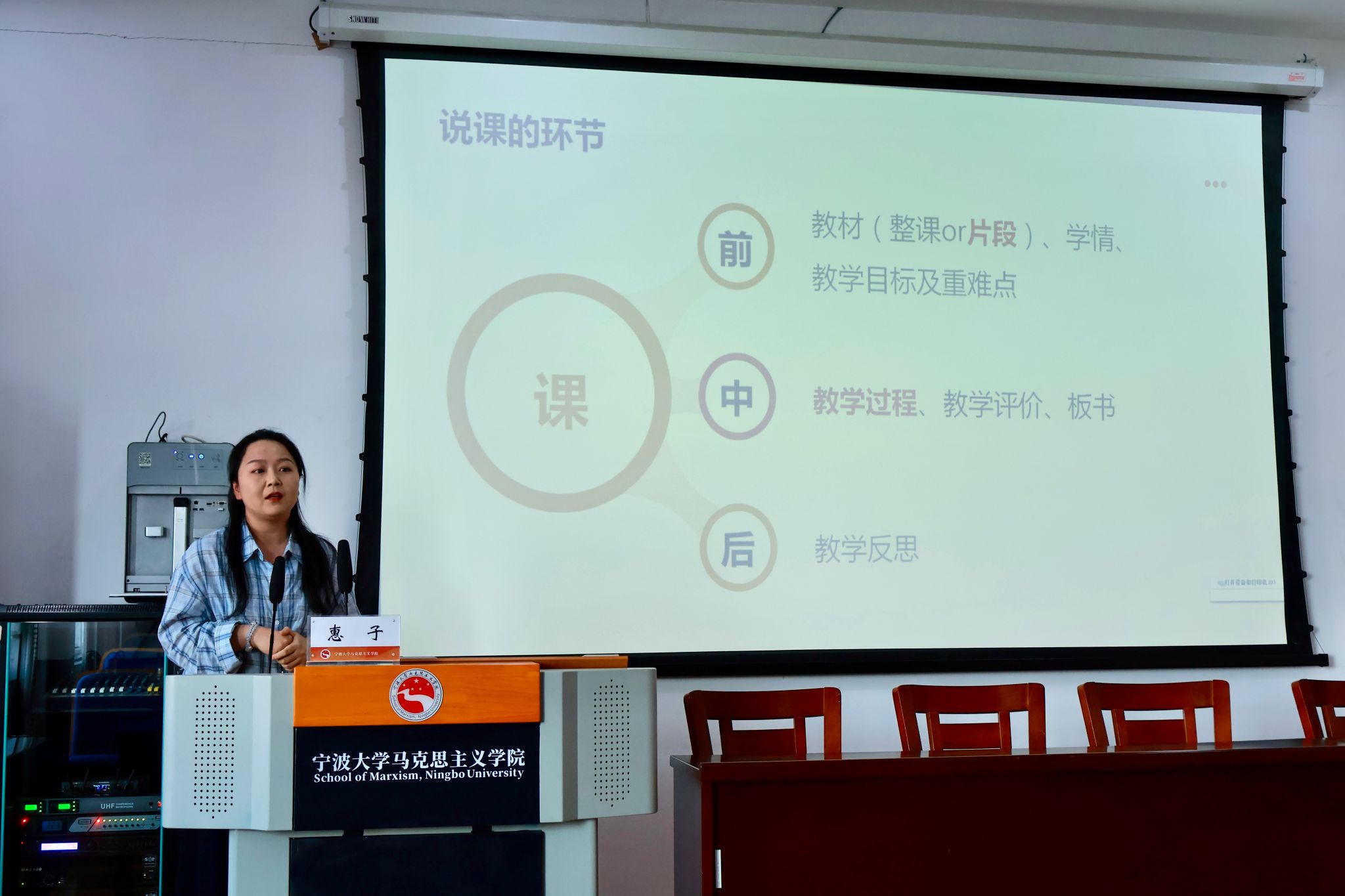 惠子,2019届思想政治教育(师范)专业校友,镇海中学思想政治学科教师。曾获宁波市优质课二等奖,宁波市直属学校优质课一等奖等。她结合自身面试经历,围绕新手教师说课经验展开专题分享。